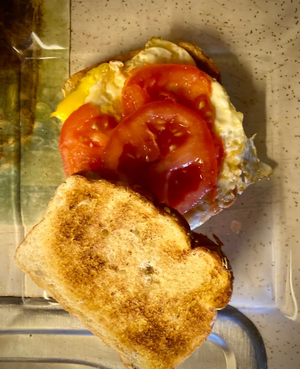 This entry was posted on January 15, 2022 by monochromejunkie. It was filed under Uncategorized and was tagged with bricoche, egg and tomato sandwich, egg sandwich, good eats, lemon macerated tomato, parmesan on egg and tomato.
