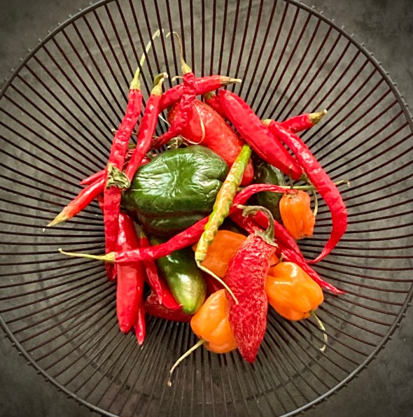 This entry was posted on September 13, 2022 by monochromejunkie. It was filed under vegan food and was tagged with anchos, green chiles, habaneros, Italian firecrackers, jalapeños, poblanos, red chiles, serranos.