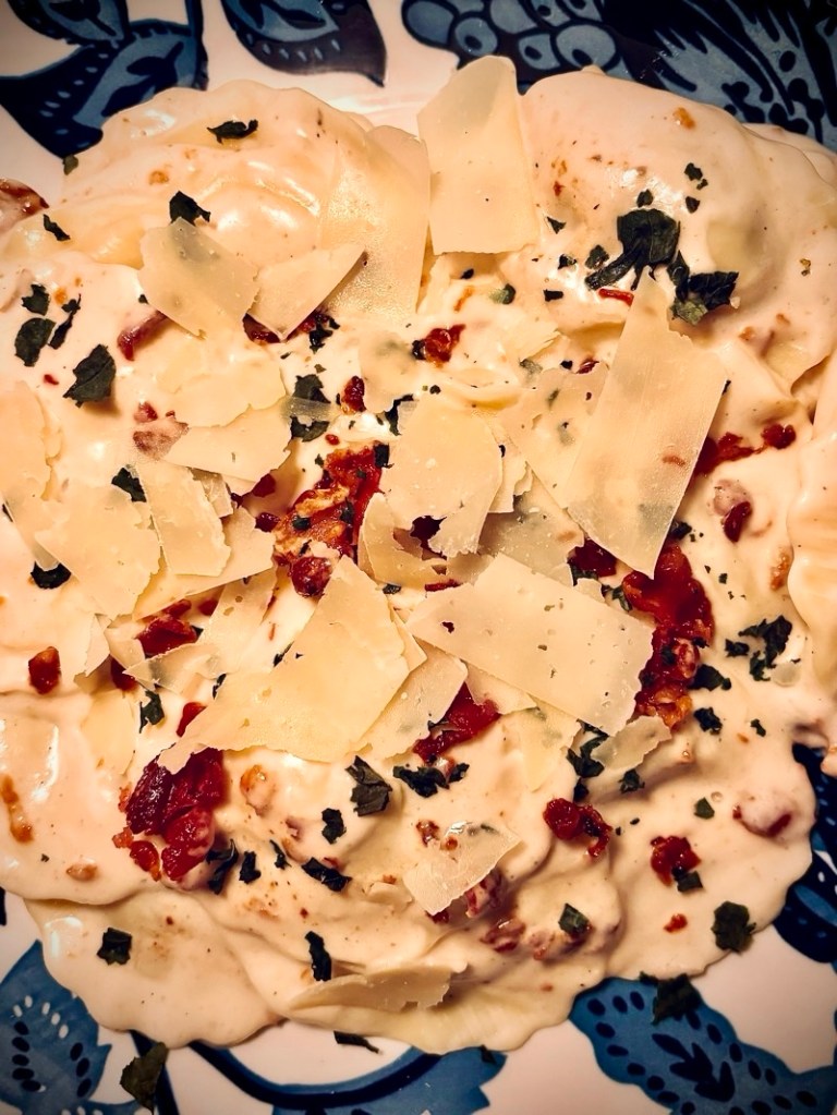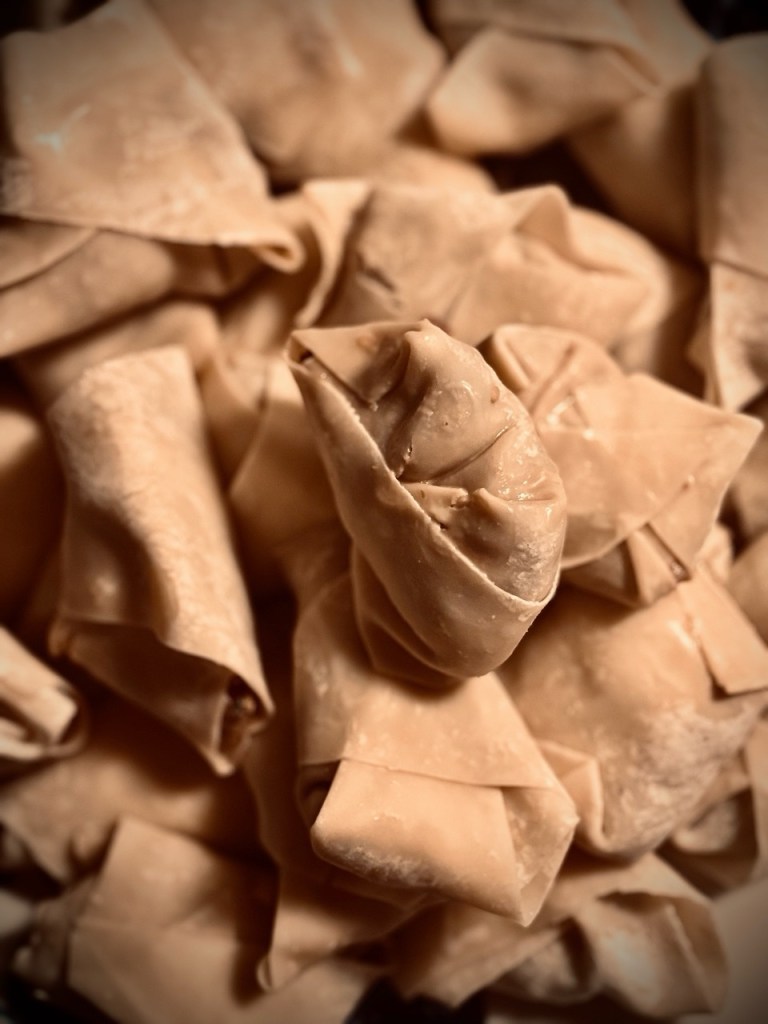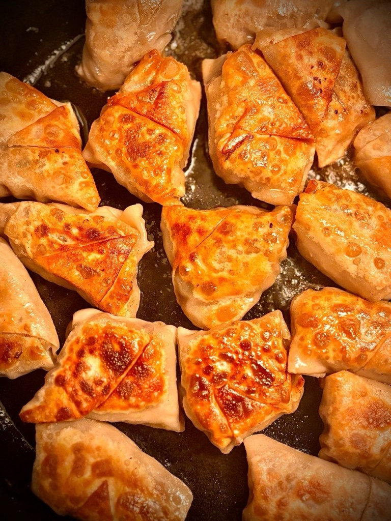 I tweaked my sister-in-law’s original recipe (which was a crime in and of itself- she’s 100% Japanese and has mastered the art of the Japanese dumpling, both in form and ingredients), but I wanted to give them a Thai-Basil twist, so ended up adding fresh cilantro, basil, mint, lime, Japanese Umami seasoning along with Red Thai Chili Sauce to the ginger, mushrooms, red onions, ground meat (ground pork, always. Walmart Delivery brought us ground beef only and omitted our pork- 2nd crime of the night) it was all too much. Were they tasty? You betcha. Was my sister’s original Gyoza/Dumpling recipe better, as simple as it was? In spades. Blew mine straight out of the water.